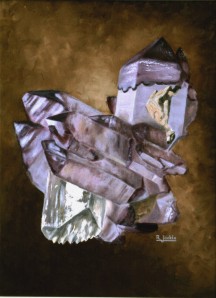Mineral: Fluorite and Quartz Locality: Okoruso, Namibia Specimen size: 4 x 3,5 cm Size of painting: 54 x 40 cm Price: $ -- Available: no |