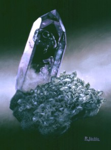 Mineral: Quartz Locality: Orange River, Namibia Specimen size: 6 x 8 cm Collection: Karl Messner Size of painting: 40 x 54 cm Price: $ -- Available: no |