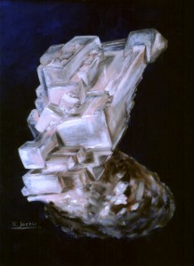 Mineral: Halite Locality: Swakopmund, Namibia Specimen size: 7 x 5 cm Size of painting: 54 x 40 cm Price: $ 1300,- Available: yes |