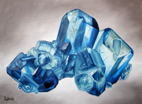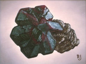 Mineral: Alexandrite Locality: Zimbabwe Specimen size: 3 cm Size of painting: 16 x 21 cm Price: $ 254,- Available: yes |
