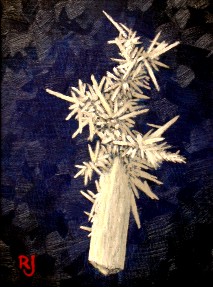 Mineral: Aragonite Locality: Eastern Transvaal, South Africa Specimen size: 4 cm Size of painting: 21 x 16 cm Price: $ -- Available: sold |