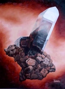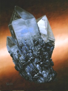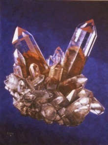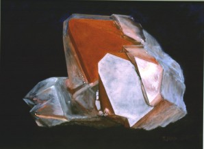 Mineral: Phantom quartz Locality: South Africa Specimen size: 4 x 2 cm Size of painting: 54 x 40 cm Price: $ -- Available: sold |