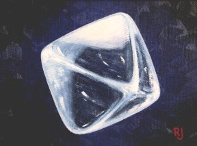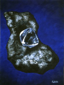 Mineral: Diamond Locality: Kimberly, South Africa Specimen size: 7 mm Size of painting: 16 x 21 cm Price: $ 254,- Available: yes |