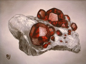 Mineral: Garnet Locality: Angelierspan, South Africa Specimen size: 5,5 cm Size of painting: 16 x 21 cm Price: $ 254,- Available: yes |